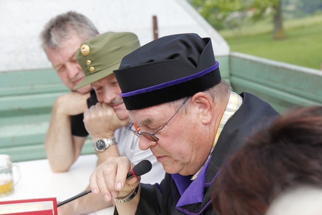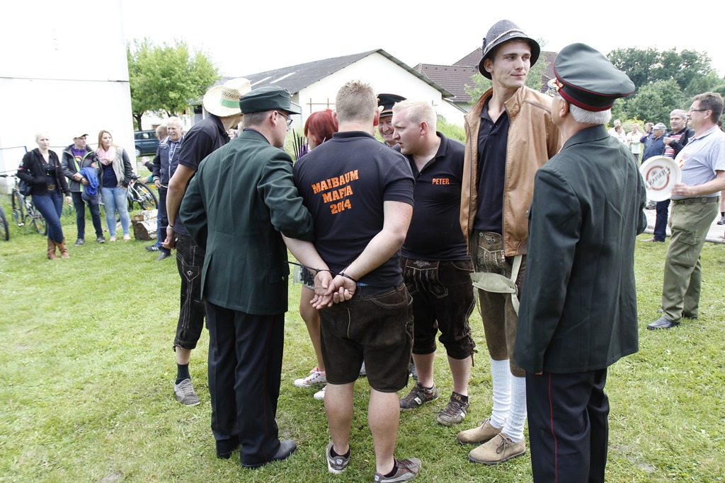 Die erwartet harte Strafe gab es am Sonntag für die Maibaummafia aus dem tiefen Selnerbachtal beim Feuerwehrhaus in Pürach. Wie bereits berichtet hatten die Halunken den schönen Maibaum noch in der Nacht des Festes zum 1. Mai entwendet. Nachdem der Maibaum durch die Bande wieder an seinem angestammten Platz aufgestellt war, wurde die Meute von unserem Wärterpersonal sogleich bis zur Verhandlung in Gewahrsam genommen. Bei etwas durchwachsenem Wetter wurden die Diebe unseres schönen Maibaums, angeführt von Hauptdieb Michael Hofer, dann dem ehrenwerten Gericht vorgeführt.