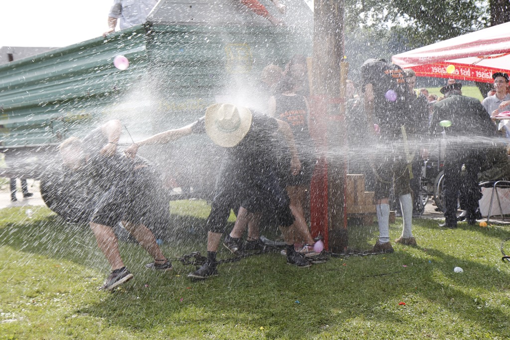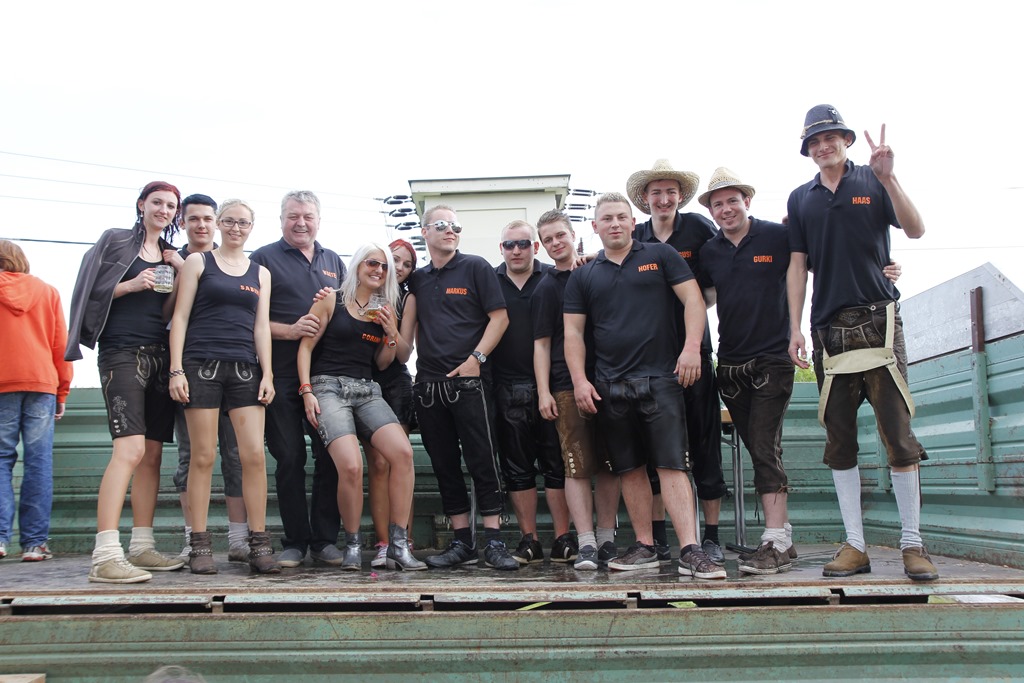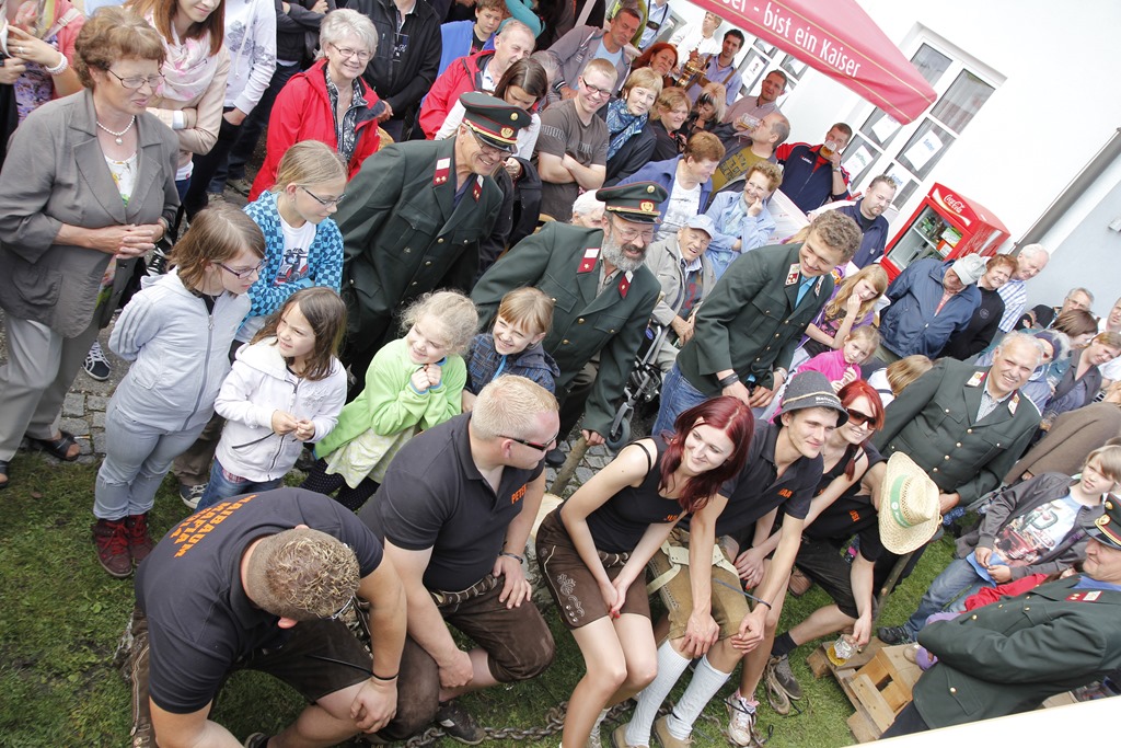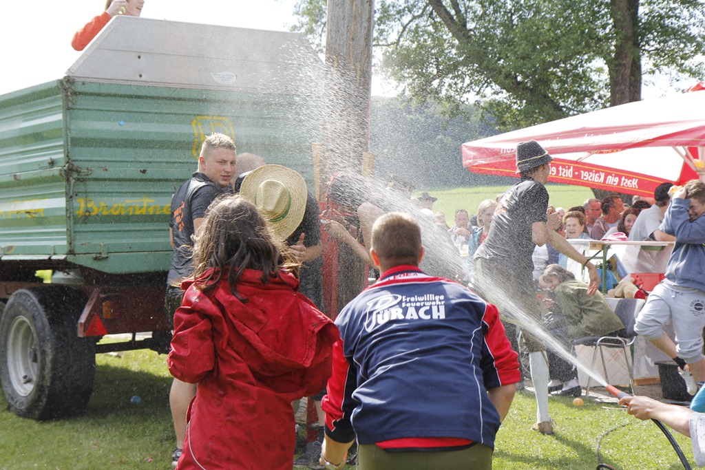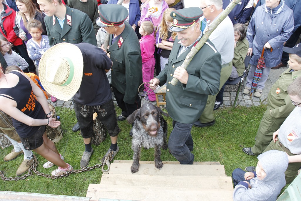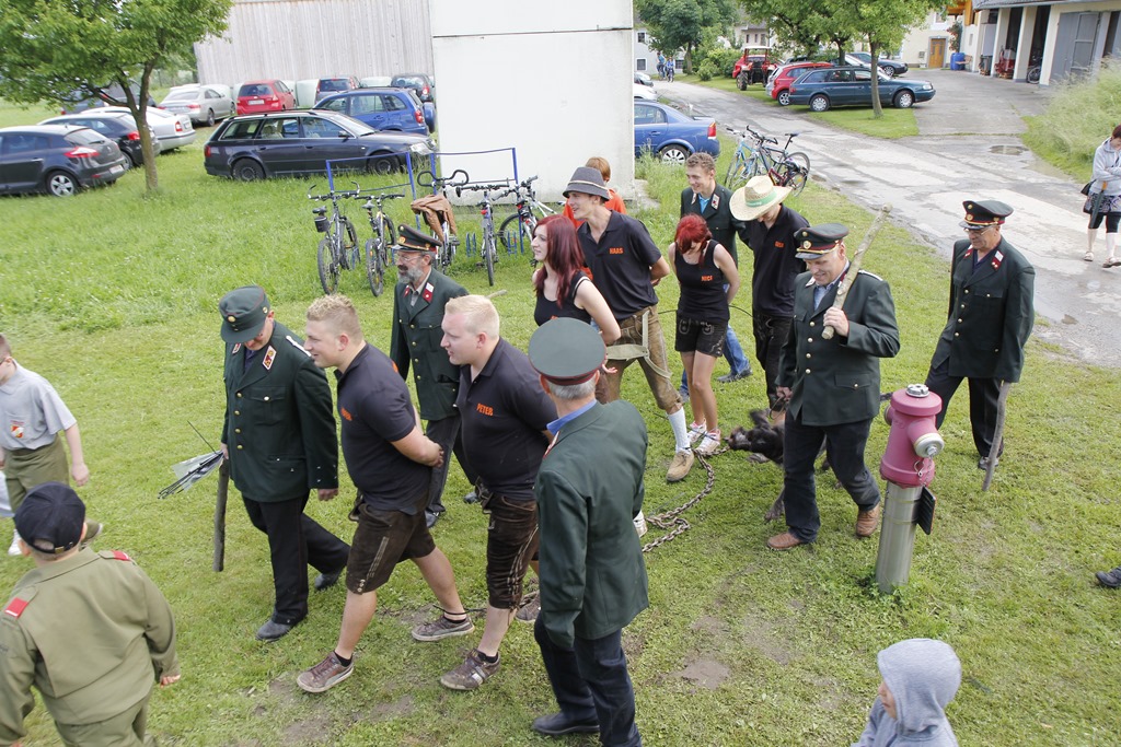 Die Bestrafung wurde sogleich vorgenommen und die Verurteilten im Zuge des Festes an den Maibaumpranger gestellt. Unsere Gäste ließen es sich natürlich nicht nehmen, sich an der Bestrafung zu beteiligen und so wurden die Diebe von ihrer Schuld “reingewaschen” ![]()