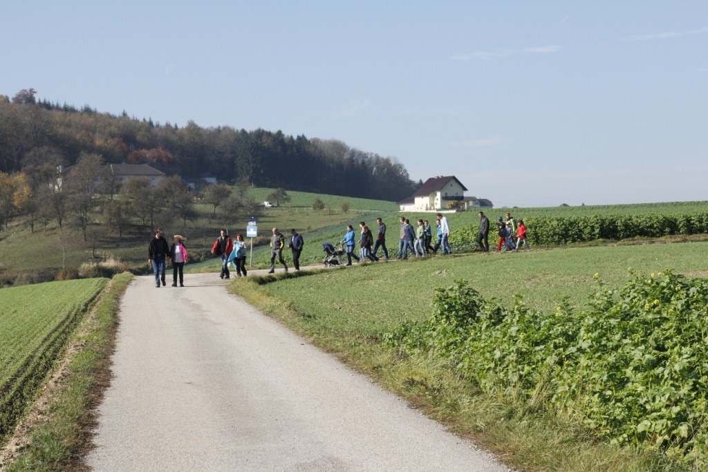 Bei tollem Wetter startete unsere Wanderung am F Haus und führte über die Kutzenberger Siedlung, am Golfplatz vorbei zum Wanderweg rund um den Luftenberg, der Teil des Sagenweges im Luftenberger Gemeindegebiet ist.