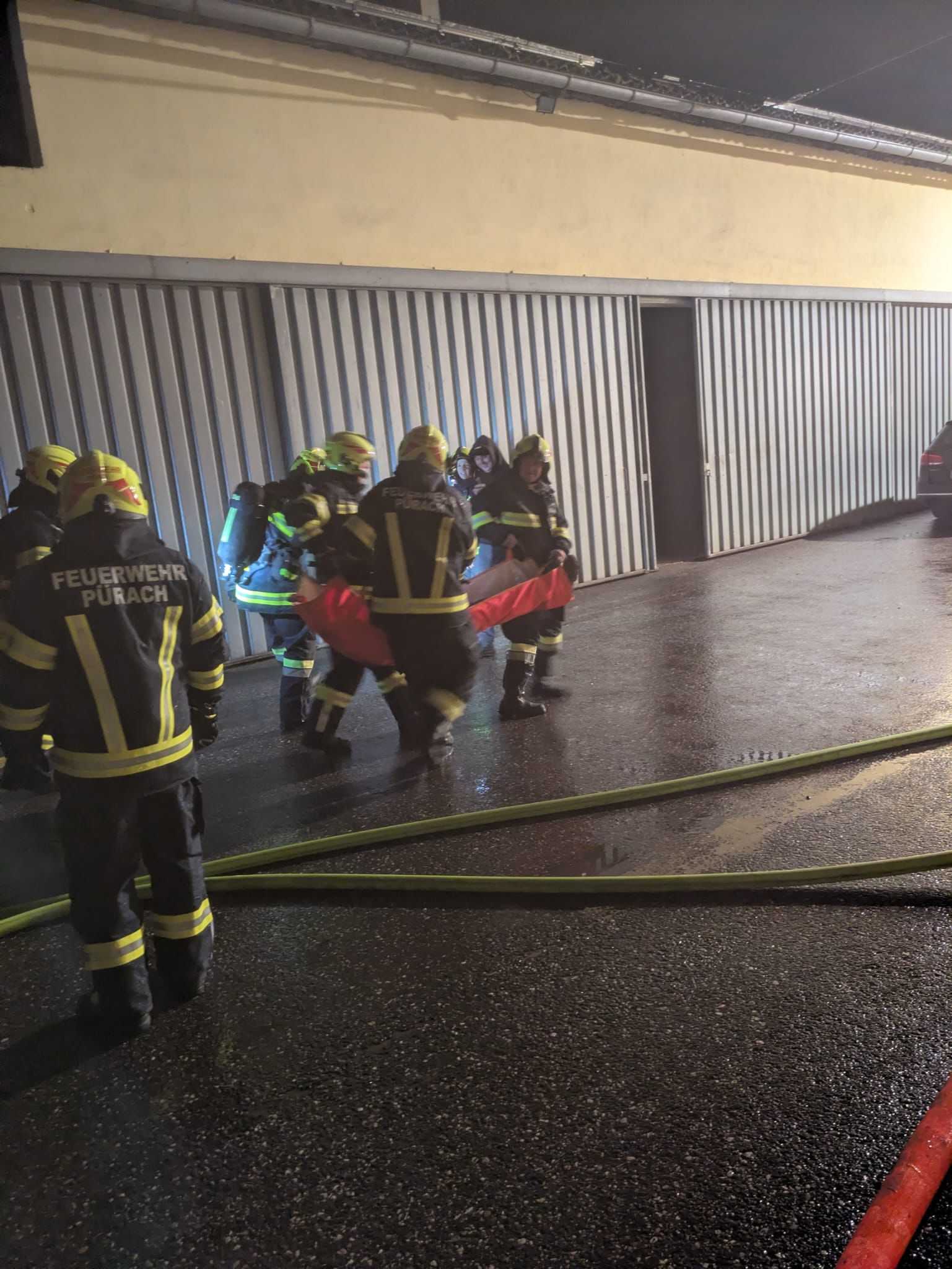 Unter realitätsnahen Bedingungen wurde das Vorgehen bei einer Menschenrettung trainiert. Während ein Teil der Mannschaft die Brandbekämpfung einleitete, kümmerte sich ein weiterer Trupp um die Suche und Rettung der vermissten Personen.