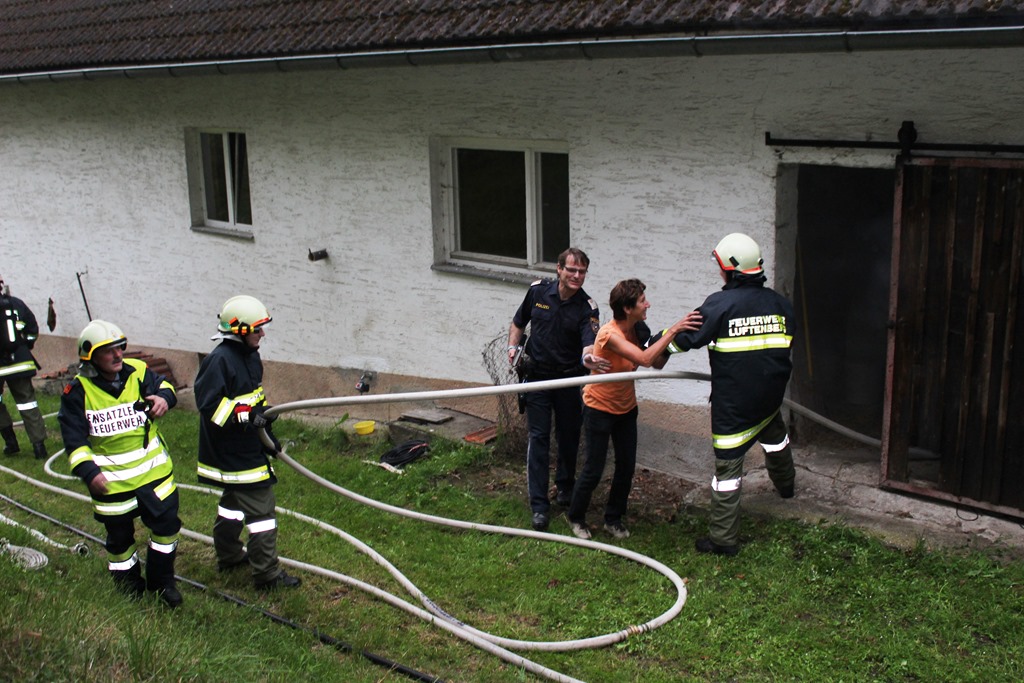 Gleich drei vermisste Personen waren bei dieser Einsatzübung zu retten. Annahme war ein Brand im Wirtschaftstrakt des Gebäudes. Als weitere Rettungsorganisationen, neben unseren Kameraden der FF Luftenberg, waren das Rote Kreuz, das Grüne Kreuz und die Polizei eingebunden. Dies stellte aufgrund des beengten Raumangebots auch eine besondere Herausforderung an unsere Lotsen dar. Als medizinische Unterstützung nahm sich auch Gemeindearzt Dr. Andreas Dibold die Zeit an der Übung teilzunehmen.